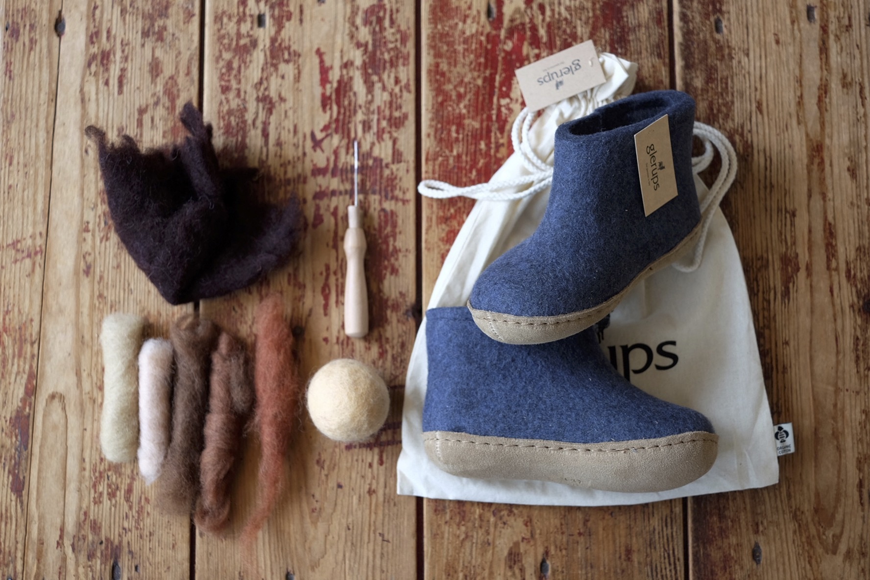 - Een vilten bal of spons (handig om in de slof te stoppen tijdens het vilten)