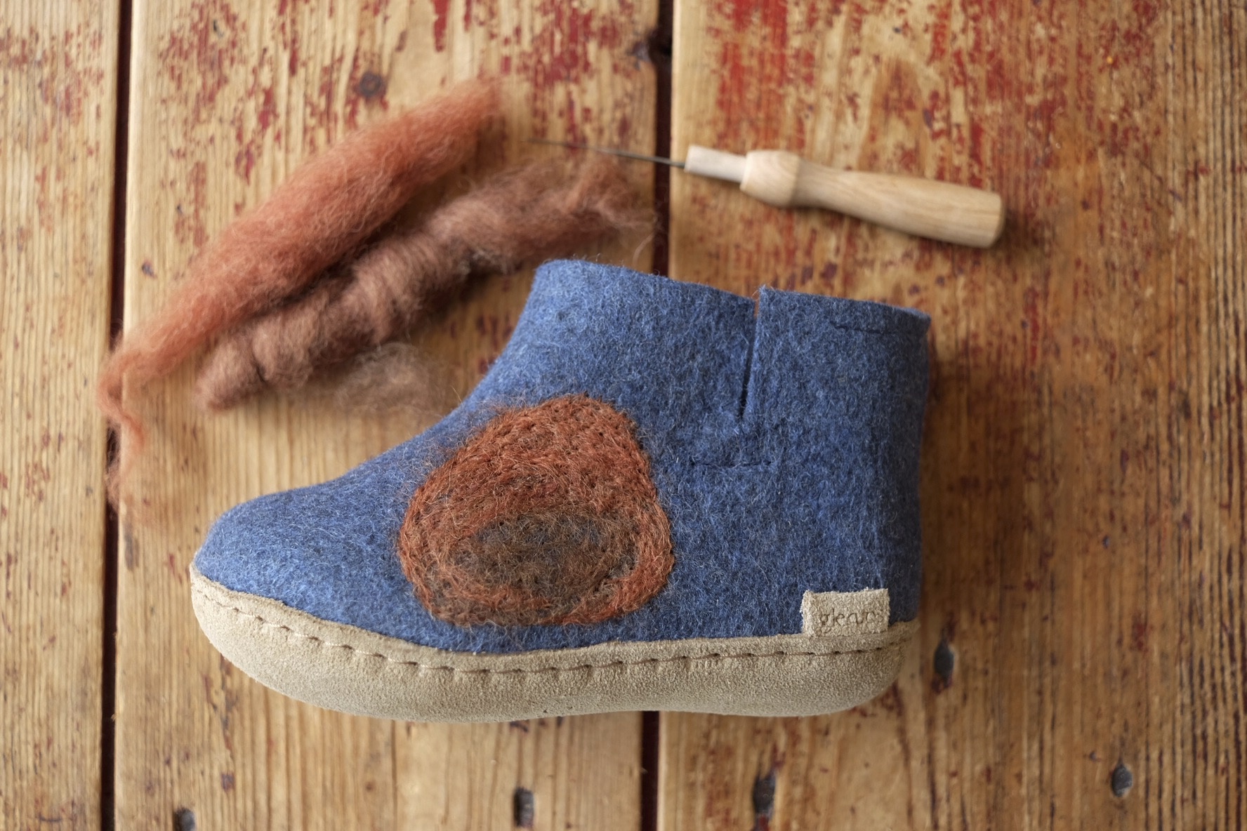 Slofjes versieren met behulp van de prikvilt techniek