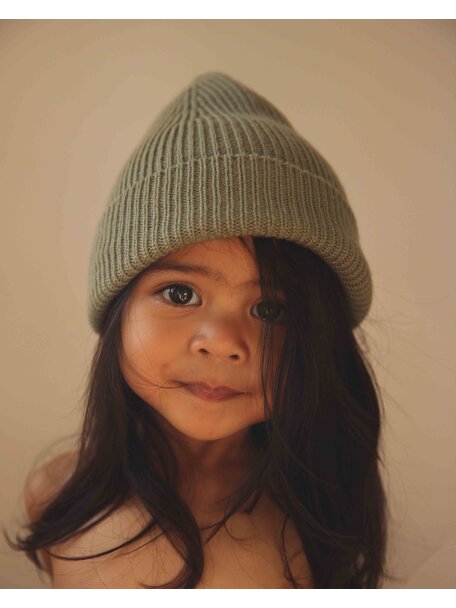 Hvid dikke ribbeanie Fonzie in de kleur artichoke. Deze beanie is gebreid in een ribsteek en heeft een fijne pasvorm. Heerlijk zacht en warm tegelijk! Gemaakt van 100% Italiaanse merino wol waardoor het ook geschikt is voor kinderen met een gevoelige huid.
